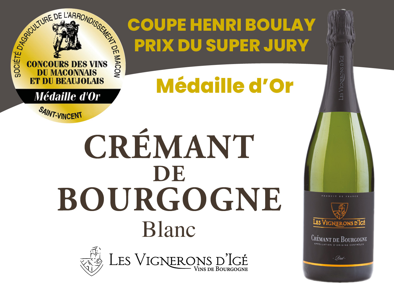 Notre Crémant de Bourgogne Blanc a obtenu la Coupe Henri Boulay